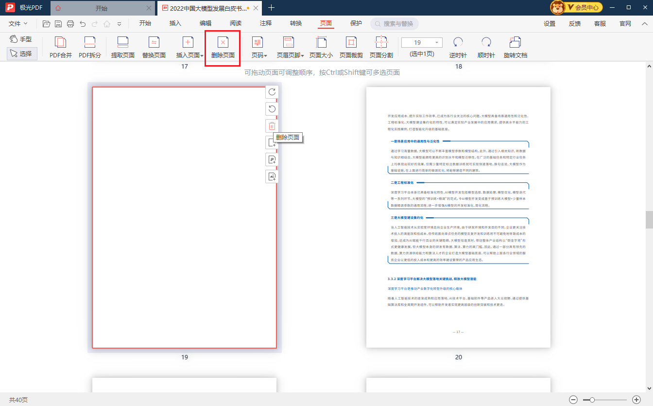 第三步:选中空白的页面,然后点击删除页面,即可将该空白页面删除掉。